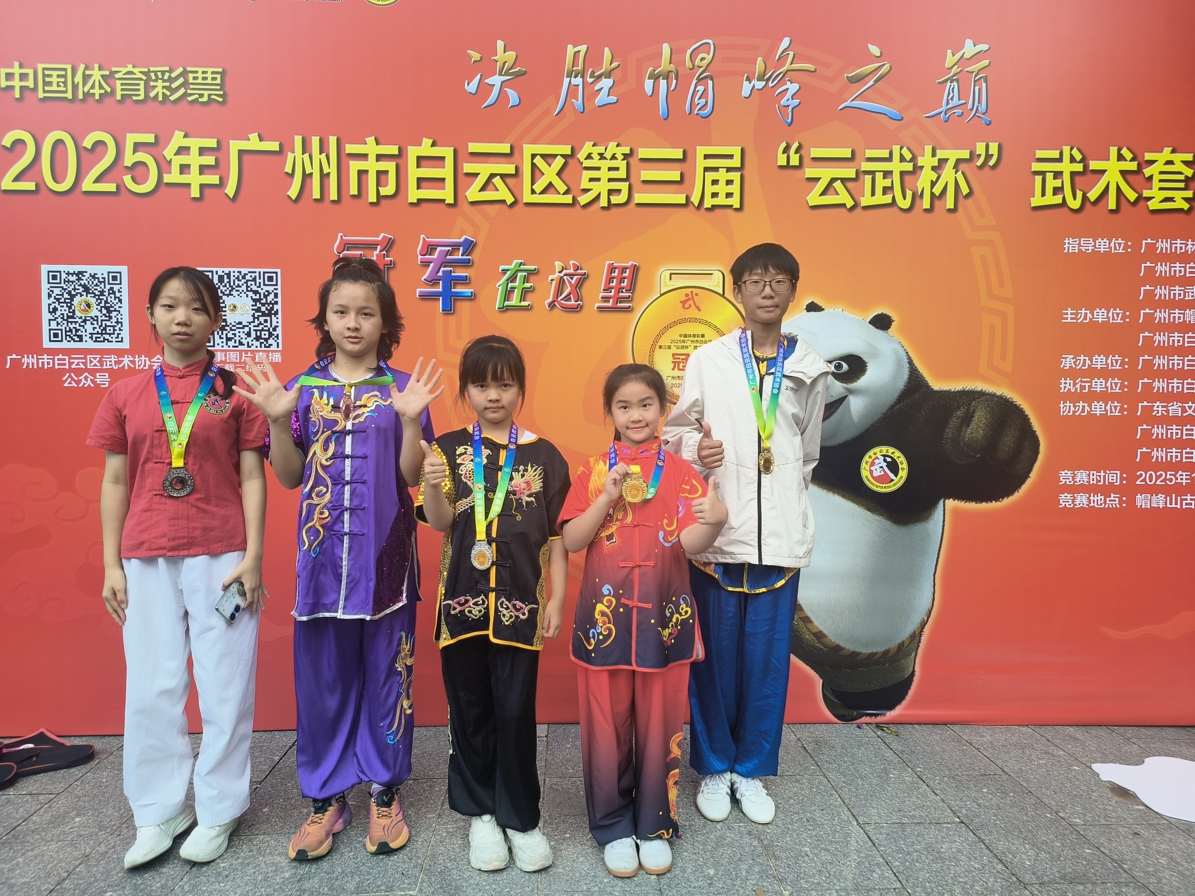 此次参赛队伍中,学员习练白眉拳时间最长七年,最短一年,而进行武术短兵对抗训练仅约半年。他们在赛场上将白眉拳的刚健与灵动展现得淋漓尽致,不仅体现了精湛的技艺,更深刻诠释了“崇礼尚武、内外兼修”的武术精神内核。这份佳绩,是学员们刻苦训练的回报,更是白眉拳传承体系成效的一次集中检验。此次全国赛场的出色表现,并非偶然。今年来,白眉拳传承团队在各级比赛中屡创佳绩:由广州市白云区教育局主办的第四届 “云奥杯” 中小学生武术比赛中,8 名小将斩获1个第一名、1个第二名、2个第三名等多个奖项;2025年第三届 “云武杯” 武术套路锦标赛中,16名运动员在24个参赛项目中脱颖而出,共取得4项第一,2项第二,4项第三优秀战绩等。