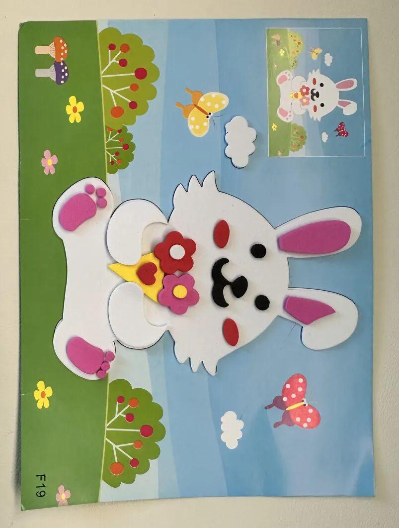 “妈妈看,我用这个边角料做的。”她拿起一张贴画(下图),原来她把贴画贴好后,用剩下的材料做了个戒指。